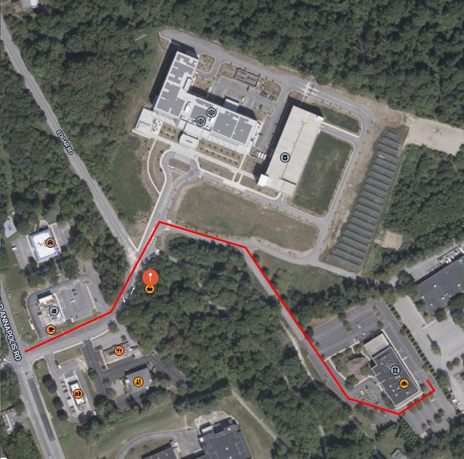 - Turn onto Bendix Rd you will see the Howard County Circuit Court building directly in front of you.